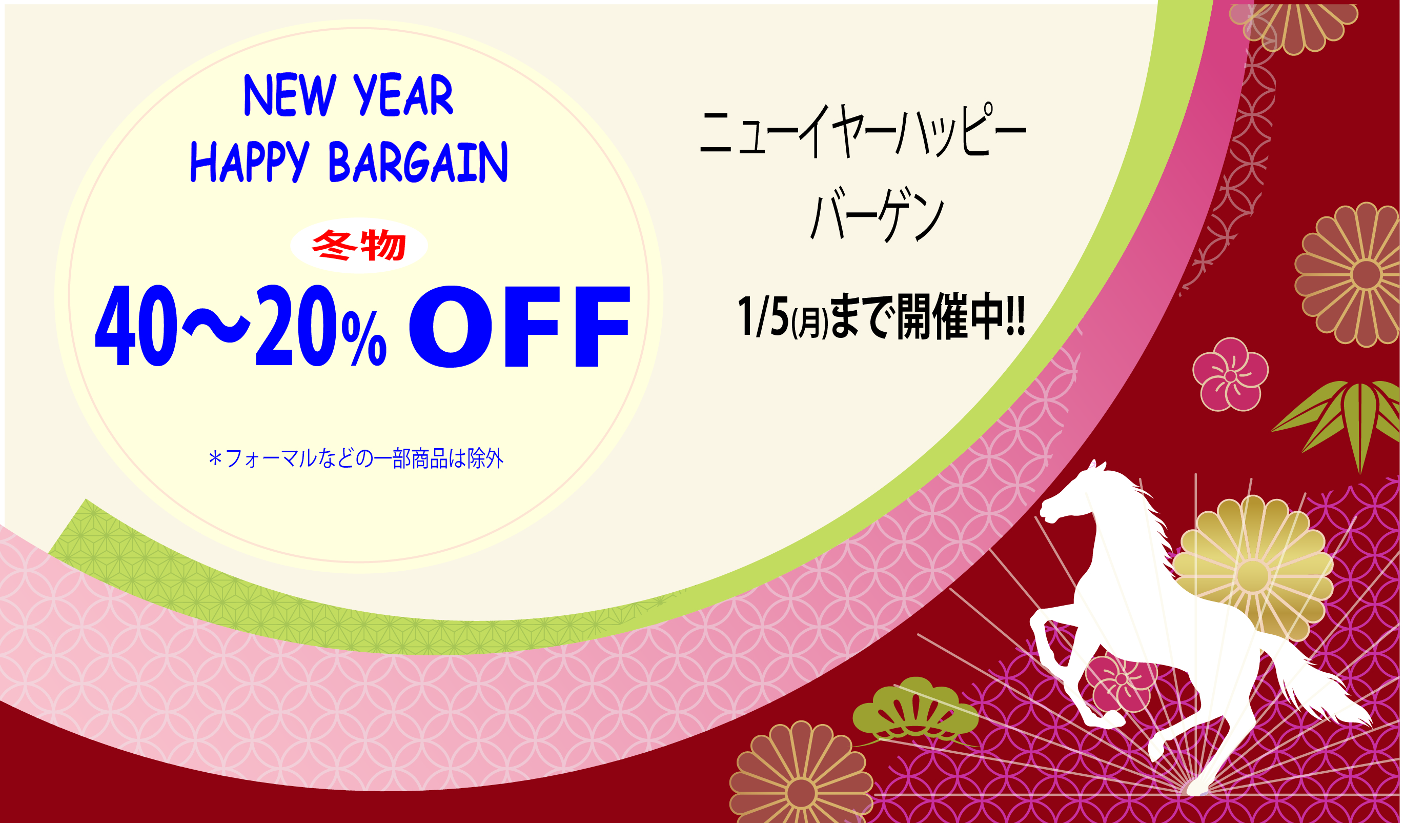 – NEW YEAR HAPPY BARGAIN – 冬物アイテム 40~20%OFF