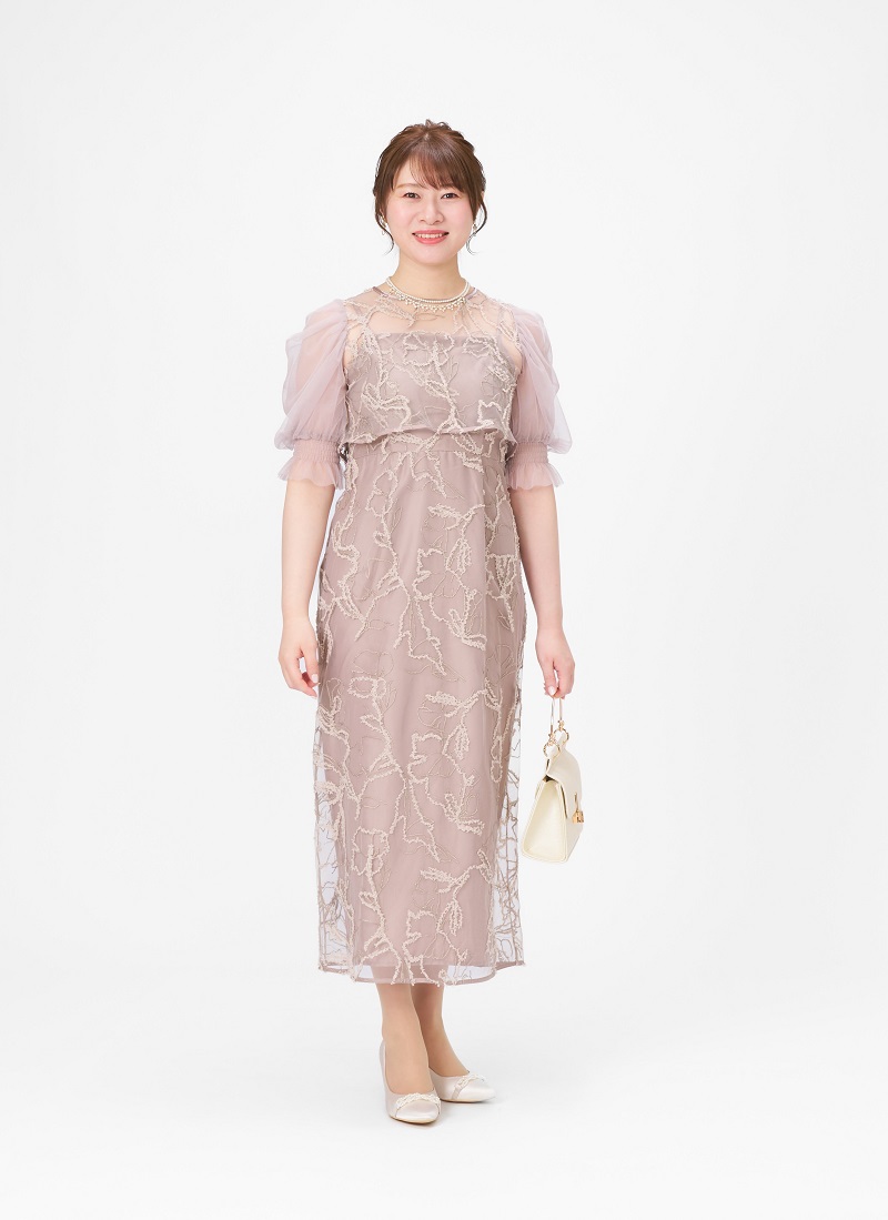 程よいシアー感と繊細なフラワー刺繍が上品な春イチオシのフェミニンドレス。